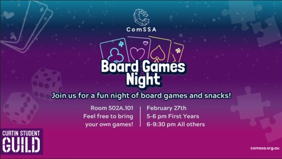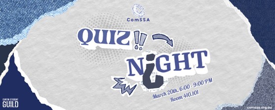 Hey everyone! 🎉 Think you’ve got what it takes to win the ComSSA Quiz Night? 🌟    Join ComSSA Quiz Night for an evening of fun, friendly competition, and challenging questions! Test your knowledge across general knowledge, computing, riddles, and trivia. Take part in mini games throughout the night for extra excitement and prizes for the winners of the quiz night. 🏆   Whether you're a trivia expert or just coming for a fun night with friends, everyone is welcome!   How it works: - Form a team of up to 6 people and compete together throughout the night. - Don’t have a full team? No worries, you can still join and we’ll help place you in a team on the night! - Joining individually? You can still join, we can place you in a team on the night! - You can also compete with fewer than 6 teammates if you prefer.   🍽️ Food and beverages will be provided   So gather your friends, bring your thinking caps, and get ready for a night of quizzes, mini games, and great company. We hope to see you there! 🎲   Quiz Night Details 📅 Date: Friday, 20th of March ⏳ Time: 6:00PM – 9:00PM 📍 Location: Building 410, Room 101 🎟️ Tickets: $5 for Members, $10 for Non-members Sign up your team or register individually using this link: https://forms.gle/B3QkRQTLpbyErfTp6